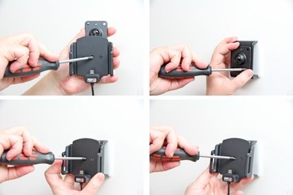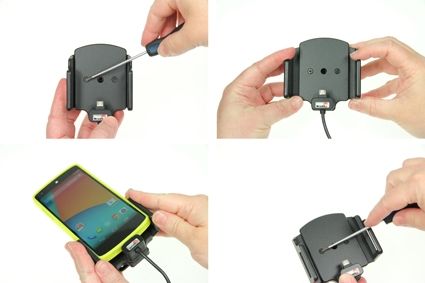 Deze Brodit houder/lader is voorzien van een vaste installatie aansluiting voor het laden van uw toestel. Zodra u het toestel in de houder plaatst, start het laden.