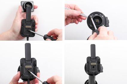 Het apparaat zit stevig op zijn plaats in de sleeve en kan niet worden verwijderd zonder de schroeven los te maken. Je hebt volledige toegang tot de camera en alle knoppen wanneer het apparaat in de sleeve zit. Voor vaste installatie. 12/24 V. Het product is e-goedgekeurd. Sluit de voedingskabel aan met een 2 A zekering. Professionele installatie aanbevolen. Uitgerust met een swivel (kantel- en draaibare adapter) zodat u gemakkelijk schakelen tussen portret en landschap modus. Gemaakt van zwart ABS- och Acetal plastic. Gemaakt in Zweden. Bevestig op een Pedestal Mount of extra sterkte montage platform.