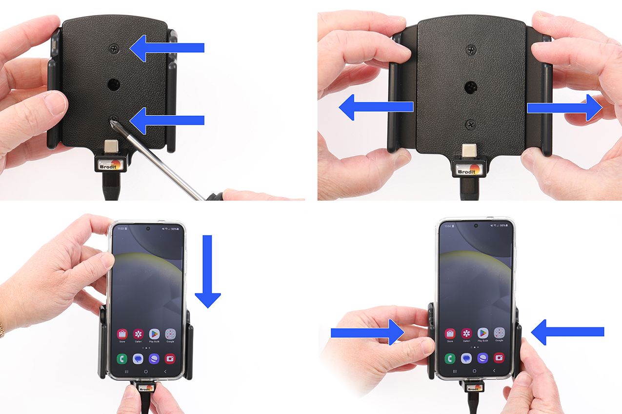Deze Brodit houder/lader is voorzien van een sigaretten aanstekerplug voor het laden van uw toestel. Zodra u het toestel in de houder plaatst, start het laden. Als u een auto met USB-interface hebt, kunt u de sigaretten-plug loskoppelen om rechtstreeks verbinding te maken met de USB-connector in uw voertuig.