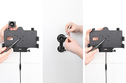 Deze Brodit houder/lader is voorzien van een vaste installatie aansluiting voor het laden van uw toestel. Zodra u het toestel in de houder plaatst, start het laden.