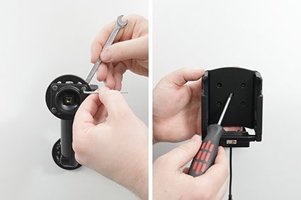 Deze Brodit houder/lader is voorzien van een vaste installatie aansluiting voor het laden van uw toestel. Zodra u het toestel in de houder plaatst, start het laden.