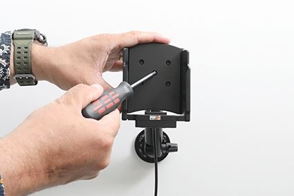 Deze Brodit houder/lader is voorzien van een vaste installatie aansluiting voor het laden van uw toestel. Zodra u het toestel in de houder plaatst, start het laden.