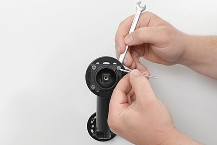 Aan de achterzijde van de houder bevindt zich een swivel (kantel- en draaibare adapter), zodat de houder onder een andere hoek afgesteld kan worden om hinderlijke reflectie op het apparaatscherm tegen te gaan.