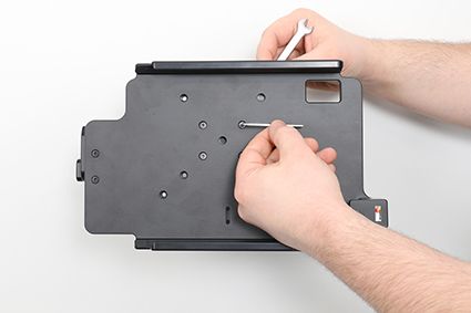 De houder met vergrendeling is te gebruiken wanneer je je tablet extra stevig op zijn plek wilt hebben. De houder heeft een vergrendeling met veerbouten, deze houdt uw apparaat stevig vast in de houder.