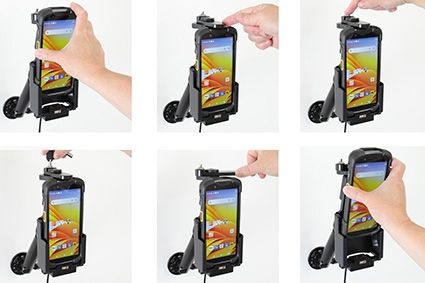 Art.nr. 712310 Actieve houder met sigaretten-plug. 3A opladen. 12/24V. Met Easy-switching systeem. Opladen via pogo pinnen. Geschikt voor apparaat met of zonder handstrap. Module Upgrade Cradle.