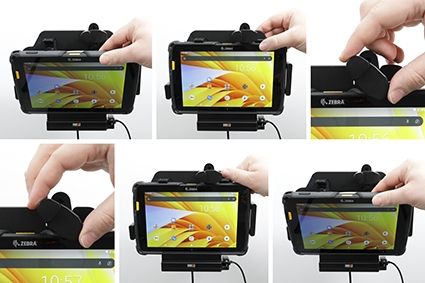 Uw apparaat in deze houder is perfect te gebruiken in een omgeving waar veel schokkende bewegingen voorkomen. Denk aan transport, vrachtwagens, grondverzet etc. De houder is voorzien van een veer vergrendeling (slotweerstand), deze houdt uw apparaat stevig in de houder maar volledig toegankelijk voor gebruik.