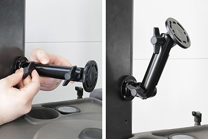 Radiale AMPS-gaten voor eenvoudige bevestiging van een voetstukbevestiging of een apparaathouder, het maakt het gemakkelijk om de geïnstalleerde apparatuur in de gewenste hoek aan te passen. Gemaakt van metaal. Kleur: zwart. Gemaakt in Zweden.
